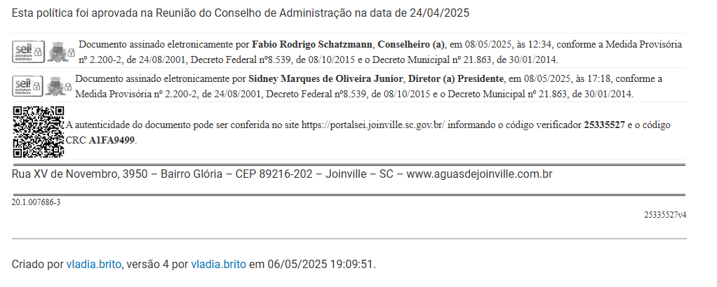 Política de Consequências e Medidas Disciplinares da Companhia Águas de Joinville;